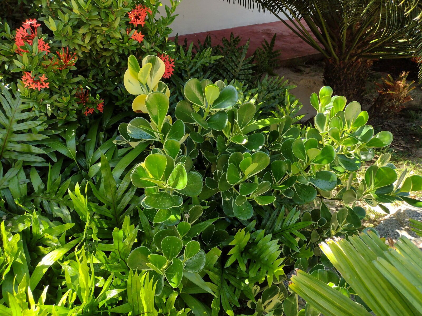 Hoi Lagarto, De grote meerderheid van onze planten zijn inderdaad helaas volledig afhankelijk van de bewatering. Dwz buiten het regenseizoen wat hier ongeveer voor een maand of 4 de kunstmatige watergift overneemt. De zandbodem in combinatie met het klimaat geven geen andere optie. Gelukkig kan ik al op veel plaatsen in de tuin de hoeveelheid wat afbouwen. Vanwege het bladerendak wat op termijn agv de groei voor de nodige schaduw zorgt. Slechts enkele soorten groeien onder de gegeven omstandigheden en kunnen zonder de kunstmatige watergift. Dat zijn oa de oudere Cocospalmen die erg diep wortelen en bij het grondwater kunnen. Gelukkig zit dat hier op slechts 6 meter, wat voor de regio relatief hoog is. Maar ook de 2 Pandanus soorten die ik hier heb staan krijgen geen water van de irrigatie. Verder heb ik zoals je zelf al noemde enkele Agave's en cactussen die ook nagenoeg nooit bewaterd worden.