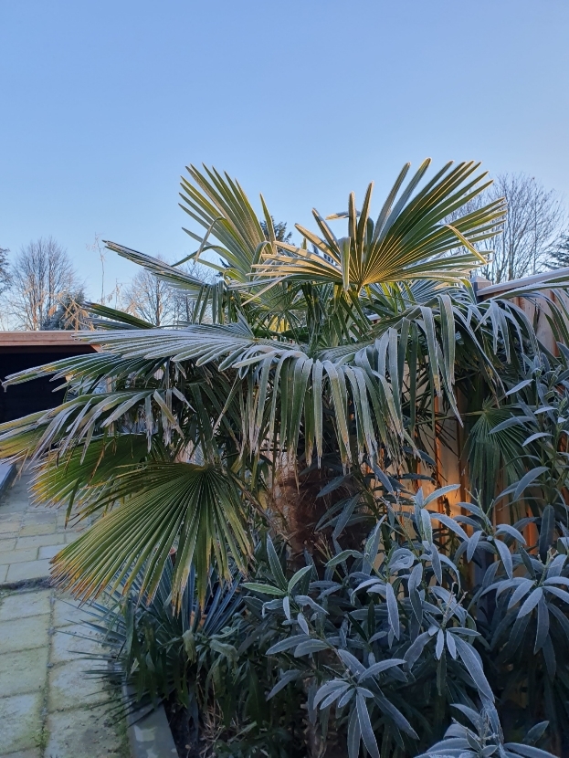 Palmen met rijp erop. Blijft een bijzonder gezicht!