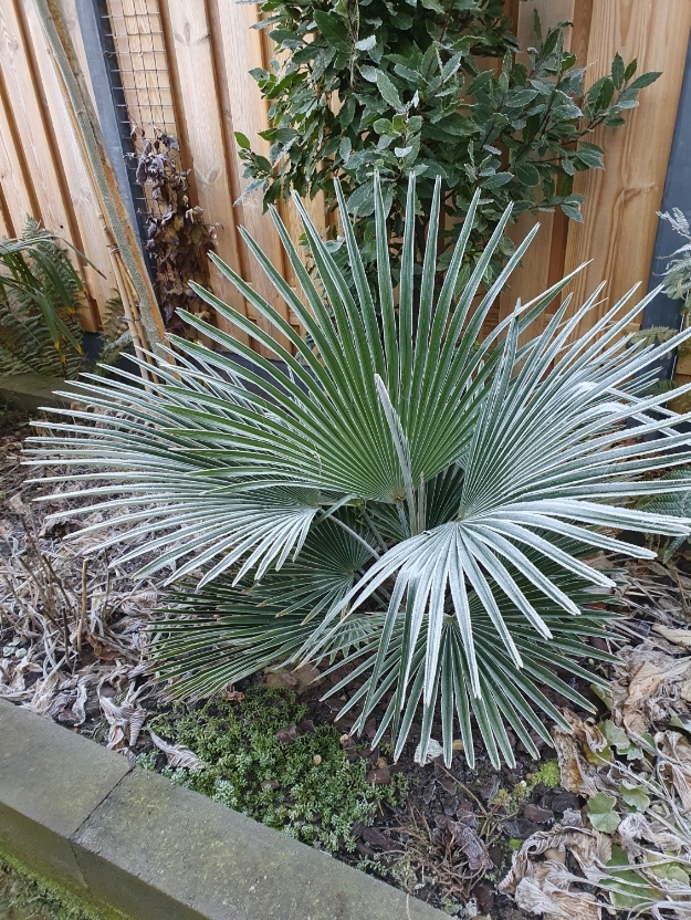 Palmen met rijp erop. Blijft een bijzonder gezicht!