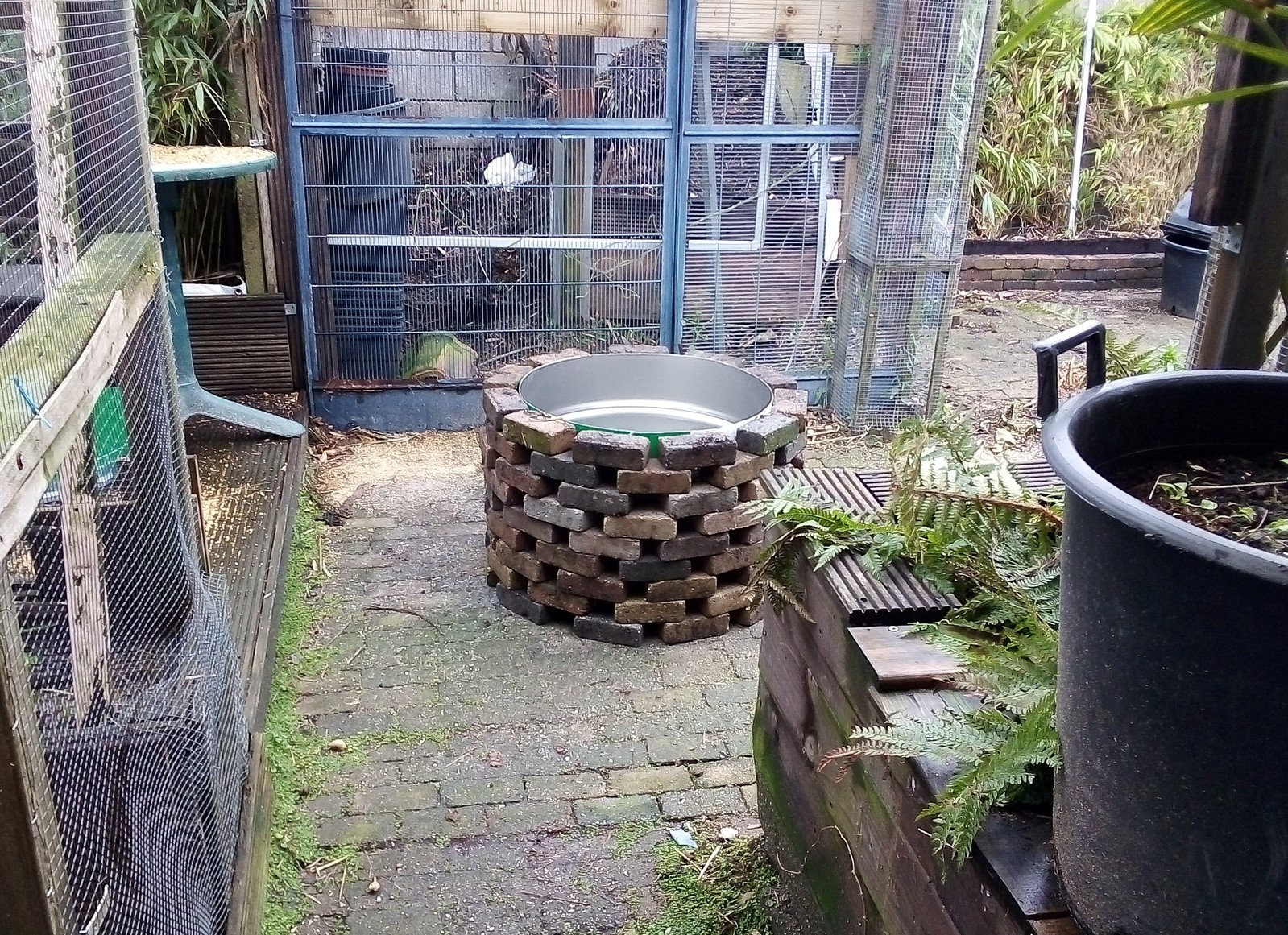 Net wat draad gespannen voor zomers klimplanten zoals klimroos, passieflora, bugainvillea, reukerwt etc. dan de Ananasguave - Feijoa sellowiana is gesplit door de sneeuw die erop lag dus een klem op gezet maar weet niet of dat de plant gaat redden