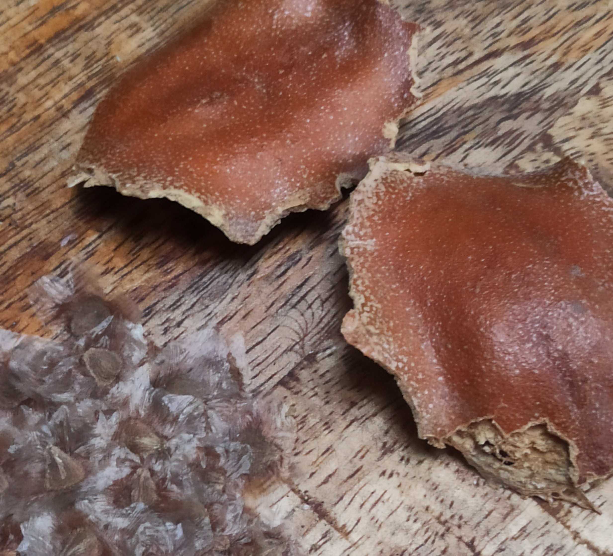 Als eerste deze zaden die uit een harde , soortement bladvormige zaaddoos komen. Ik heb helaas geen foto van het boompje waar deze aanzat