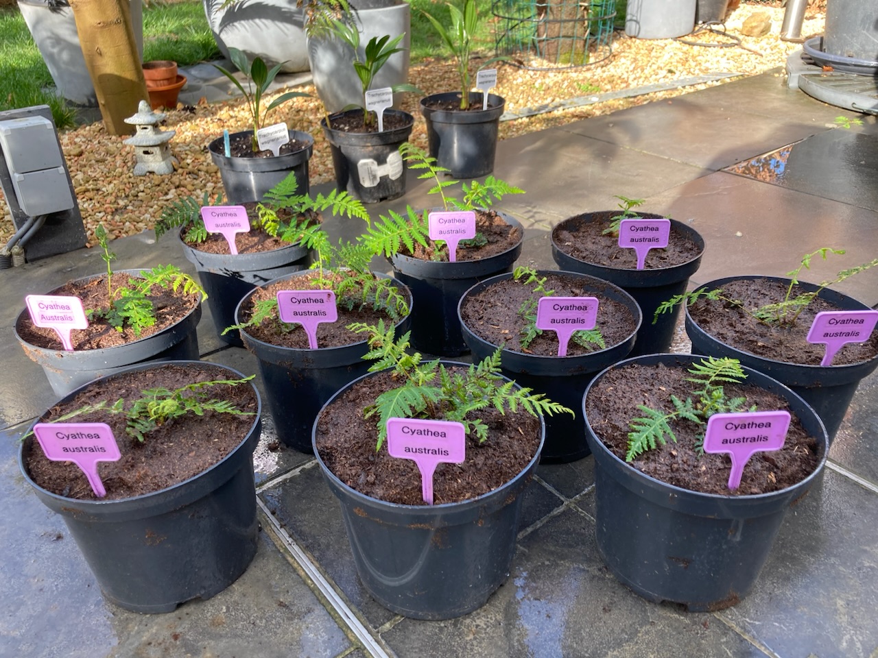 Al terug een deel dicksonia antarctica en cyathea australis verpot van p9 naar 3 liter potten…