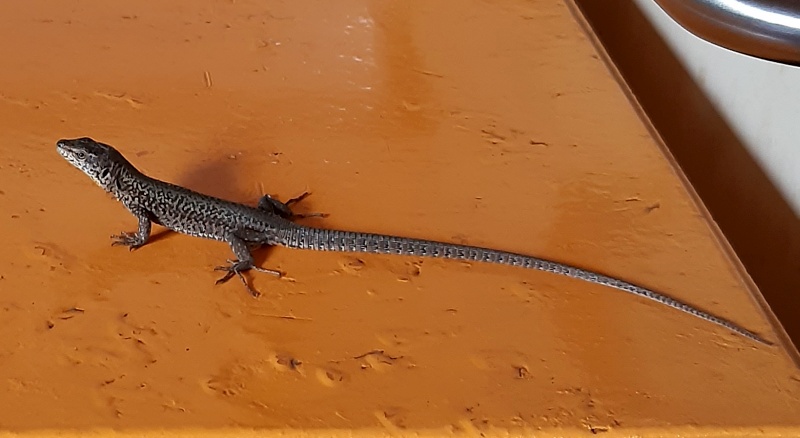 2-we hadden een bezoeker in ons keukentje: een Spaanse muurhagedis! Zie foto's. Prachtige beestjes die bij ons graag in het aluminium raamkozijn wonen. Ik heb deze veilig buitengezet omdat we bang zijn er per ongeluk op te gaan staan. Op de foto niet te zien is dat zijn rug behoorlijk groen is.