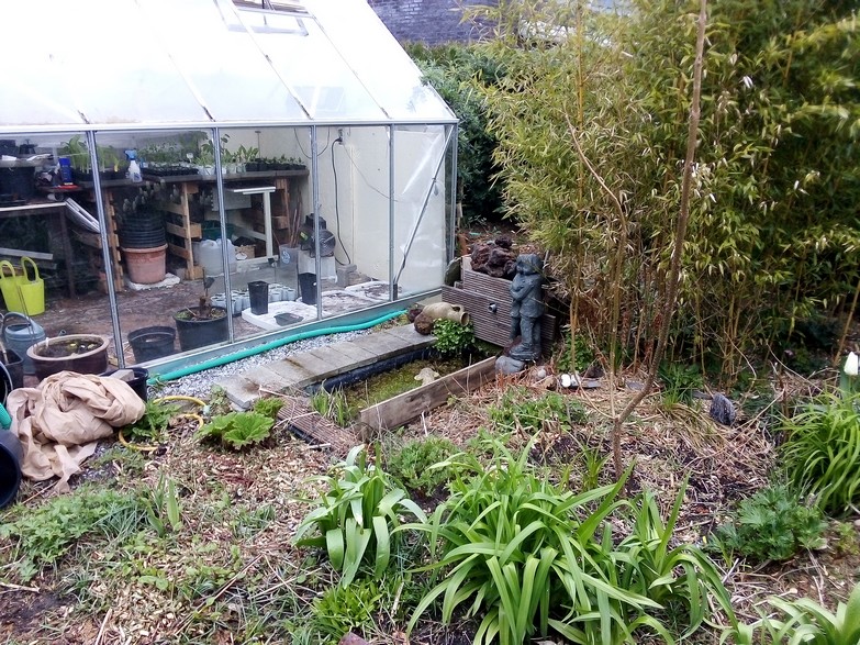 Even wat foto's toegevoegd. Vooraan zie je de gunnera al staan, heeft winter mooi overleefd. Achteraan, dat rond ding, gaat weg en daar graaf ik een kleine ton in de grond voor een vijvertje. Zo kan die zand al in de badkuip ter opvulling