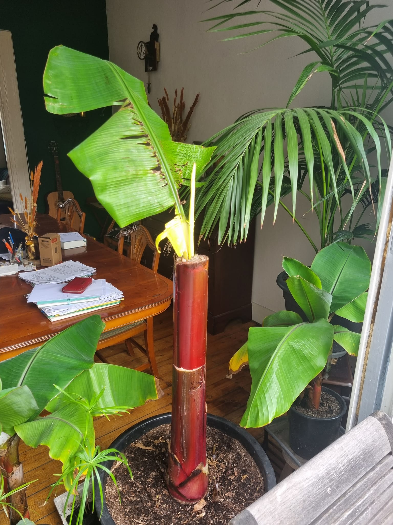 Sylvain, update ajb aangezien het slechts een paar dagen duurt voor een paar kammen banaantjes zich ontluiken, erg benieuwd. For the record, op welke hoogte Pstam komt de bloem eruit ?
