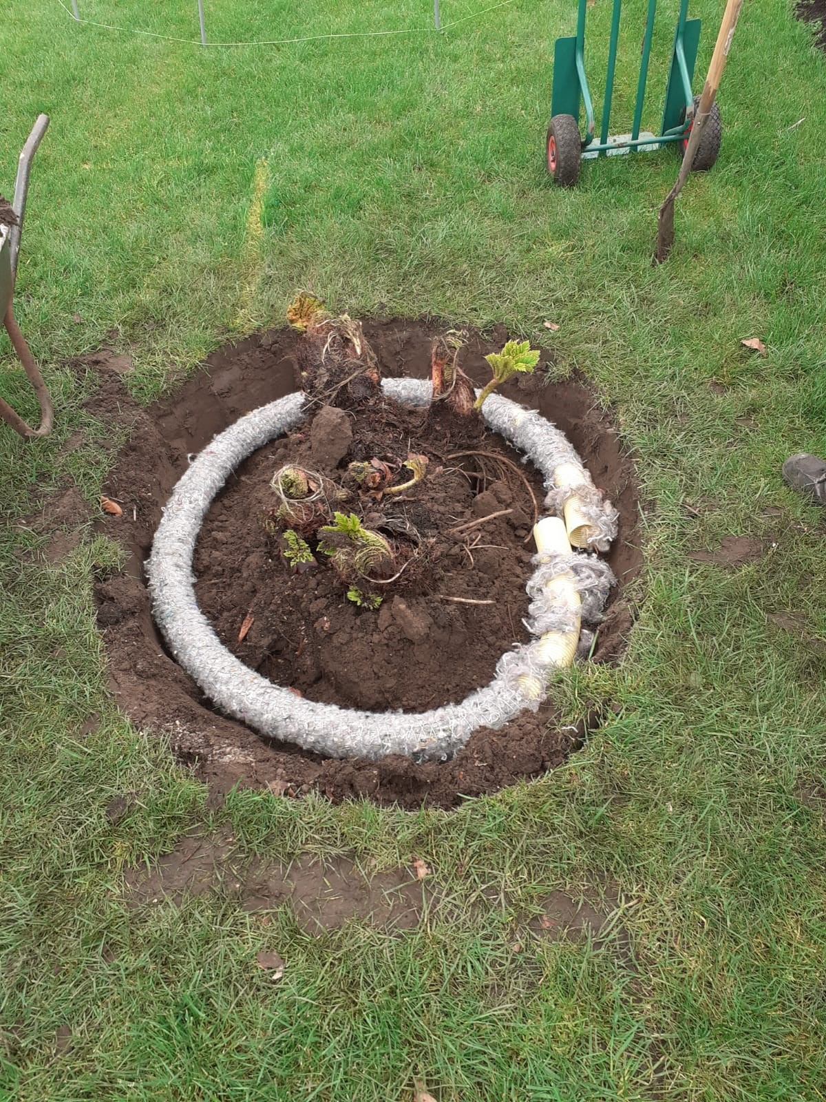 gisteren na 3 jaar eindelijk mijn gunnera manicata op de juiste plaats kunnen zetten.