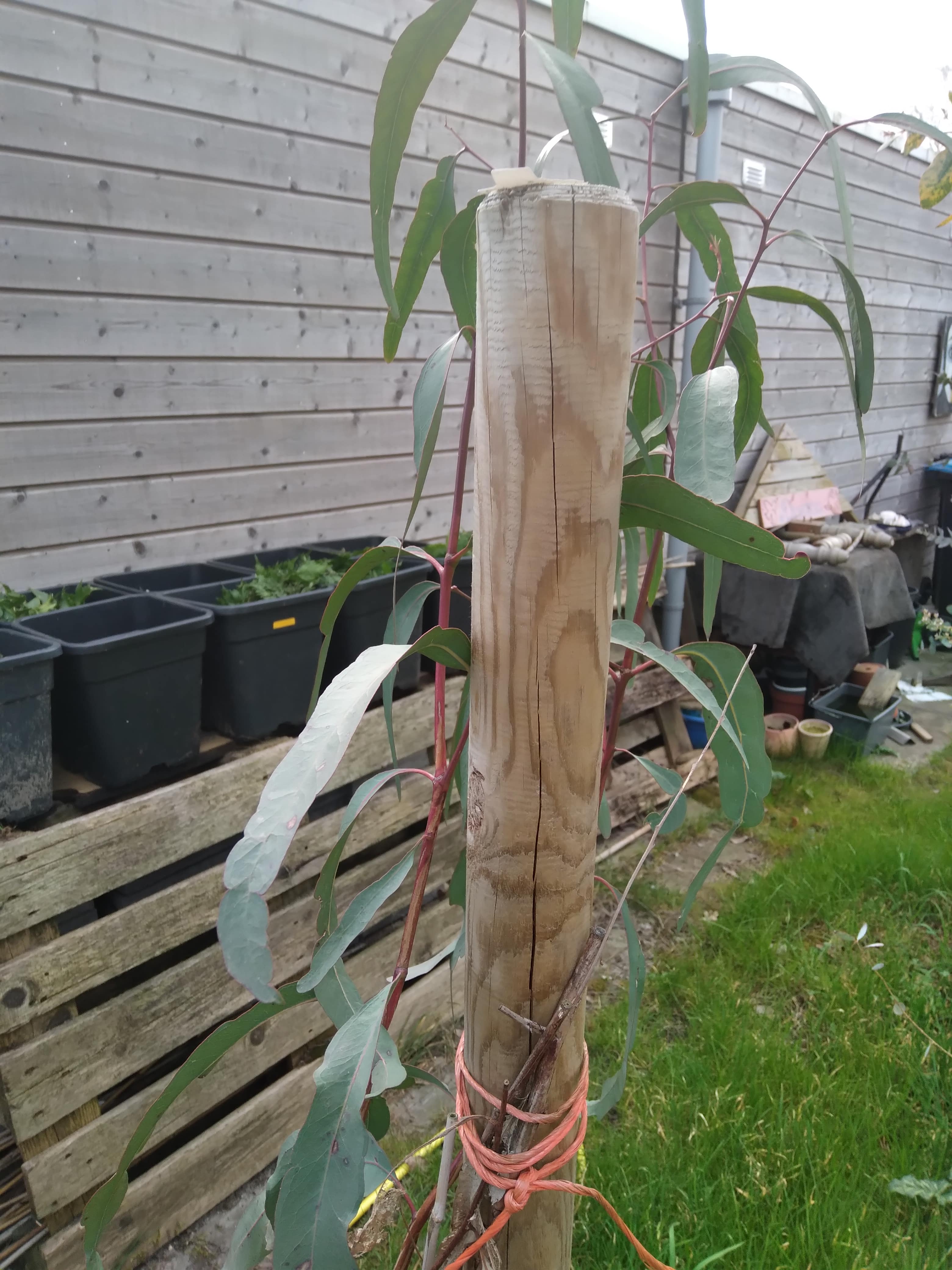 Foto's update Eucalyptus camaldulensis, doodgevroren in winter 2022/2023, voorjaar/zomer 2023 opnieuw uitgelopen, doodgevroren in winter 2023/2024, voorjaar/zomer 2024 opnieuw uitgelopen, winter van 2024/2025 was niet echt winters