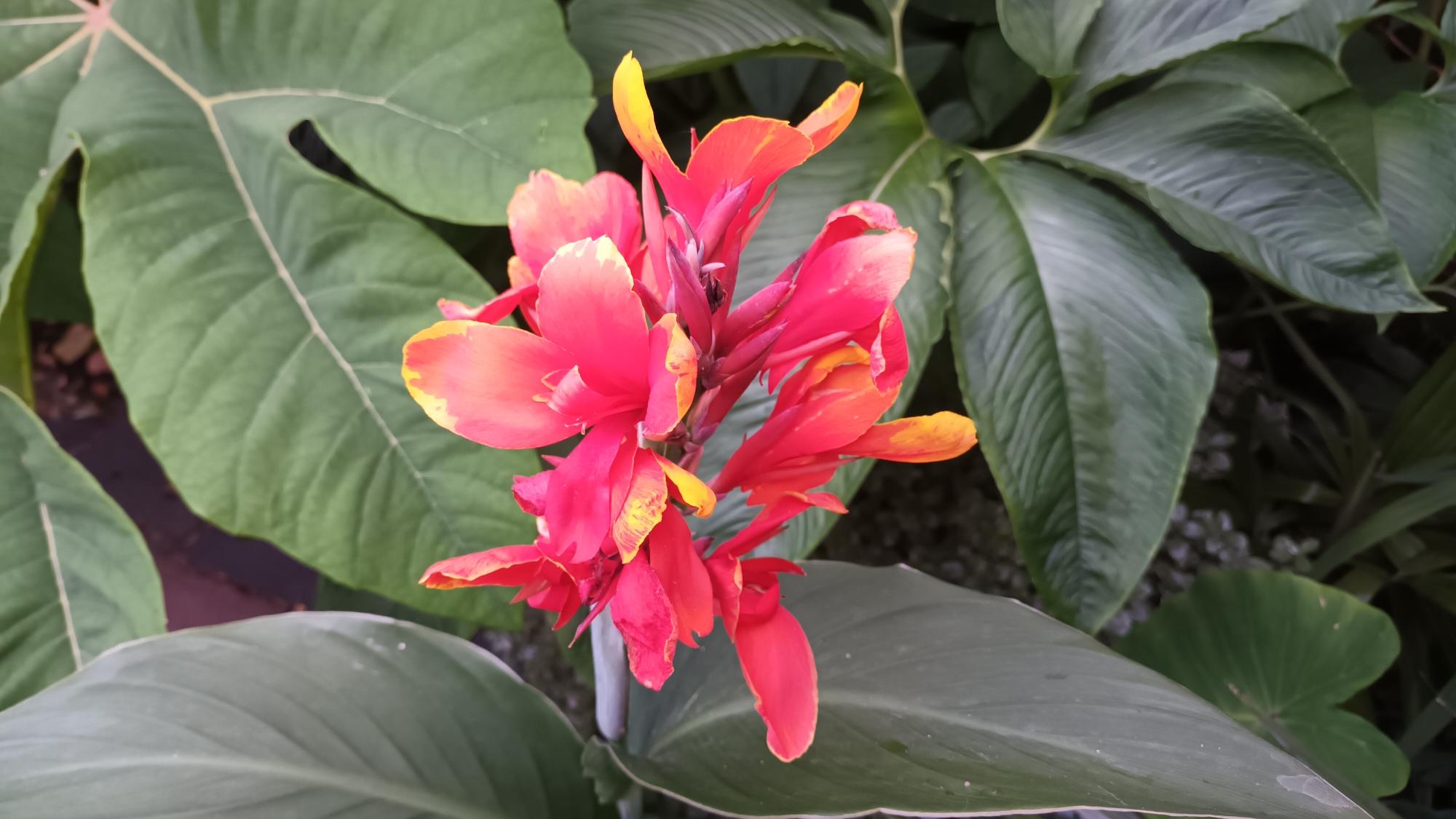 Lucifer is een dwerg canna met rood gele bloemen zonder oranje erin de kleuren zijn sterk begrensd en lopen niet in elkaar over.