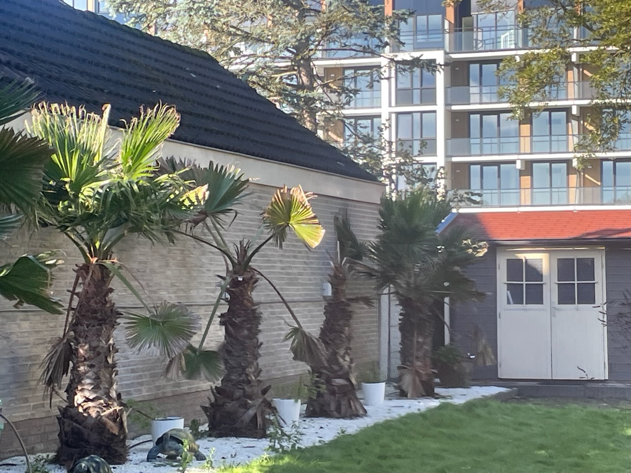 Dat is correct Rob, er zijn er nog 2 (niet op de foto) die wel een zuid positie hebben en die zijn prima. De muur zorgt inderdaad voor een schaduwplek in de winter.