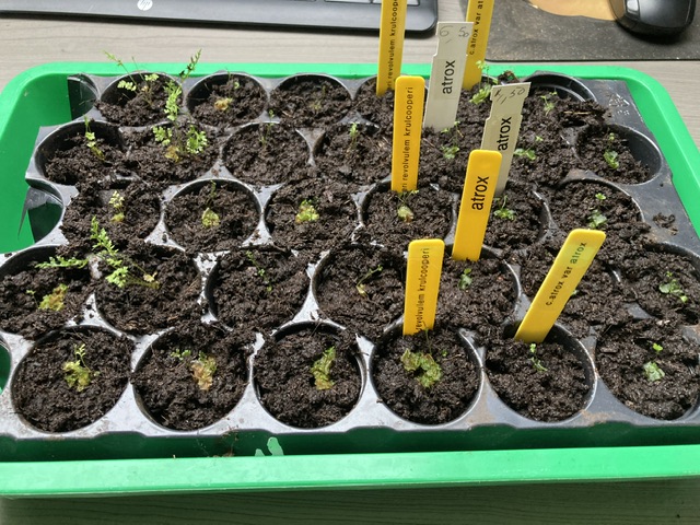 Vroeger zetten ik ze ook buiten tot de merels er in gingen wroeten en de plantjes uit de potjes gooide op zoek naar wormen! Heb je daar geen last van ?