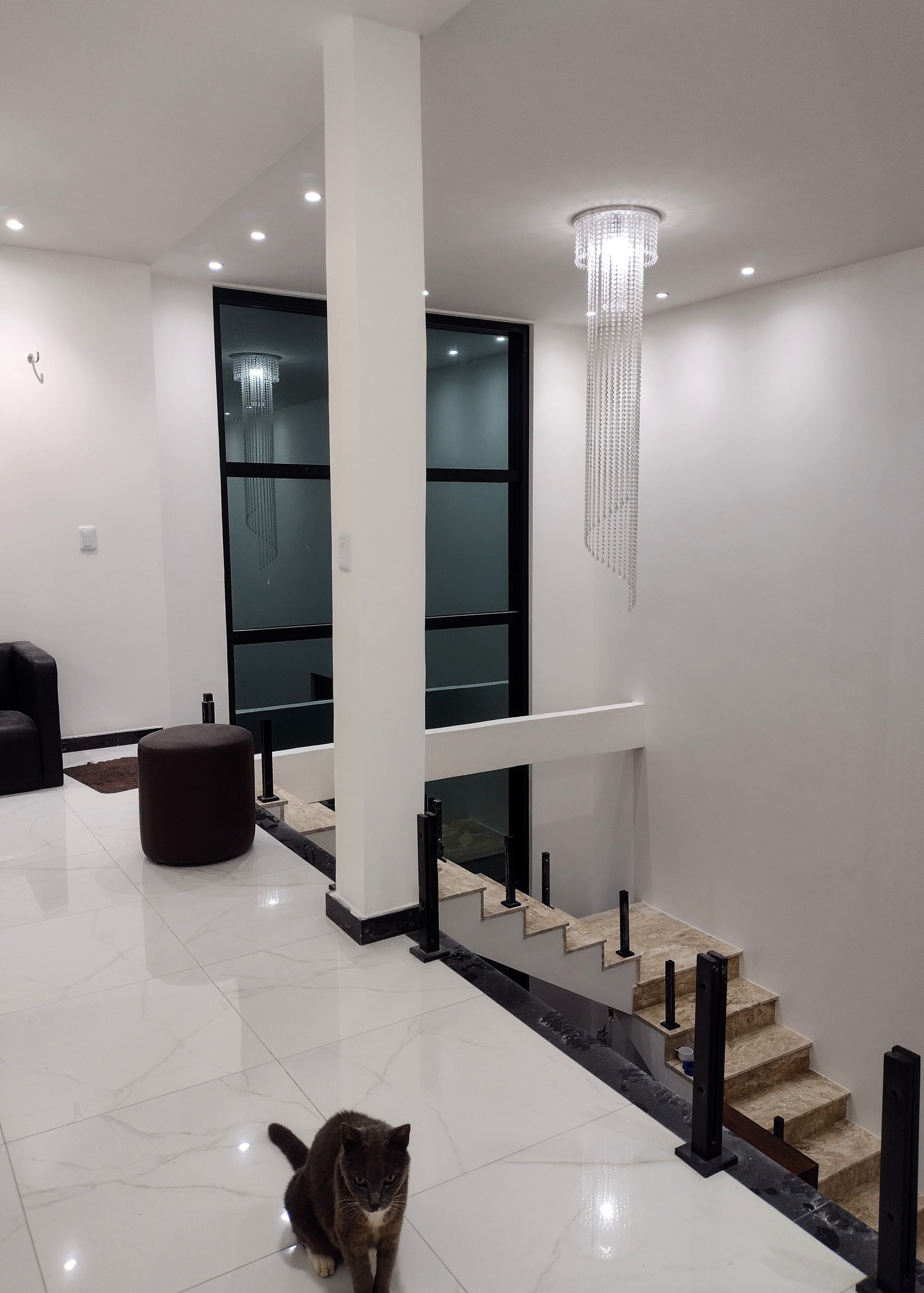 Dankje Eduard nee geen marmer, hier is porselein calacatta gebruikt. Hopelijk worden komende week eindelijk is de glazen relingen geplaatst voor de trap, balkon en de overloop!