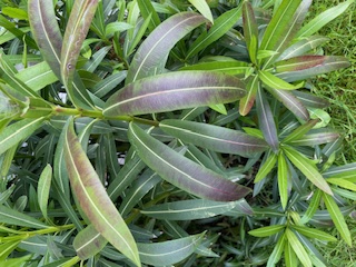 Mijn oleanders hebben de winter goed doorstaan in volle grond maar nu merk ik donkere plekken op enkele bladeren. Ik heb een tip gekregen om dit tegen te gaan, zijnde: een bakpoeder oplossing,