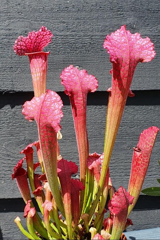 Sarracenia groeit het best in wat krappe potten. Volop in de zon buiten.