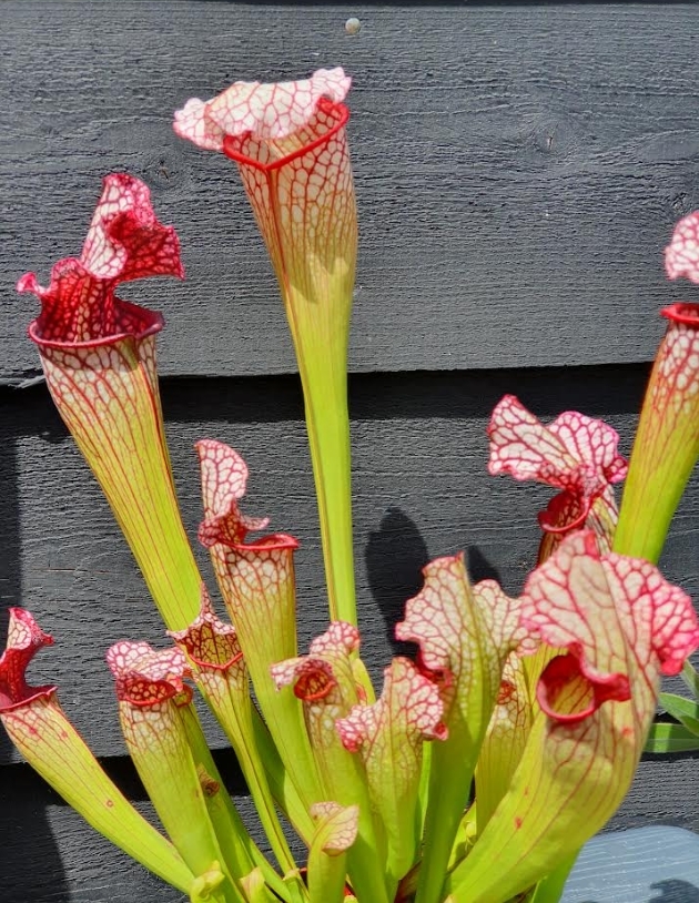 Sarracenia groeit het best in wat krappe potten. Volop in de zon buiten.