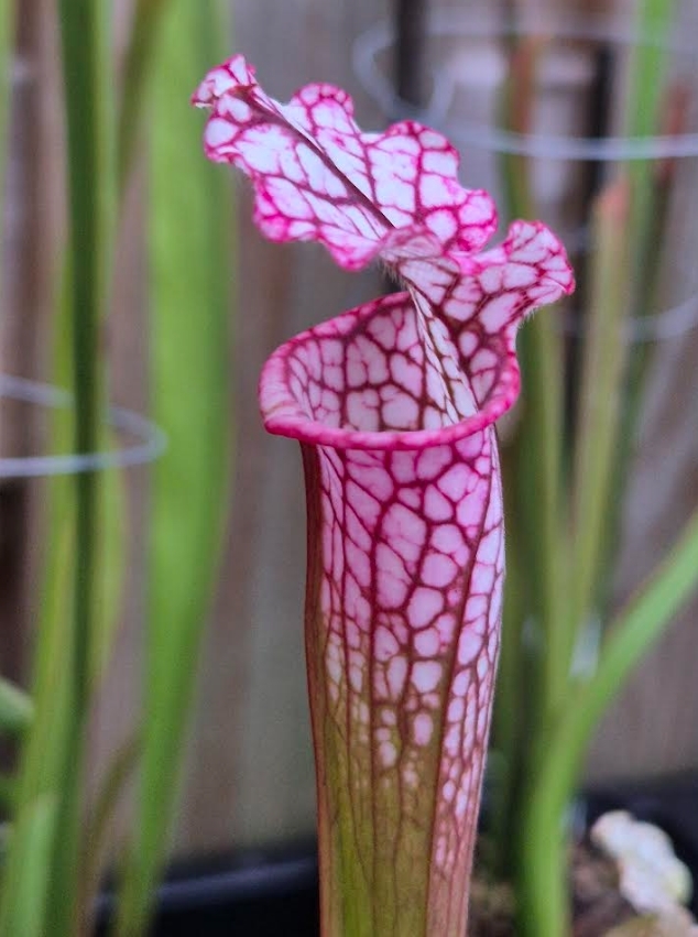 Sarracenia leucophylla en hybriden ontwikkelen de mooiste bekers in het najaar.