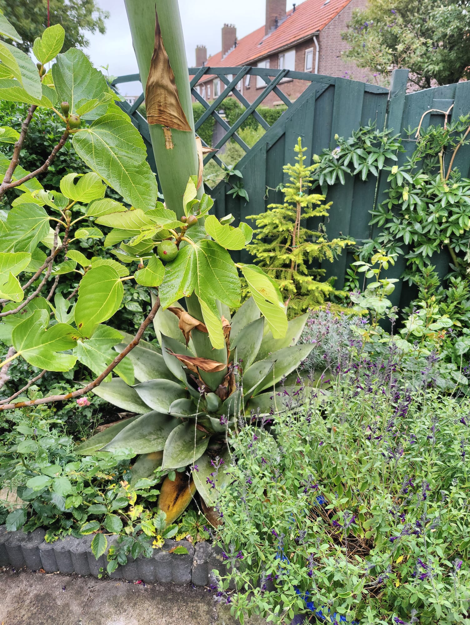 Vorig jaar stond er een straat verderop een agave in bloei. De plant was erg oud. Ik dacht rond de 50 jaar.