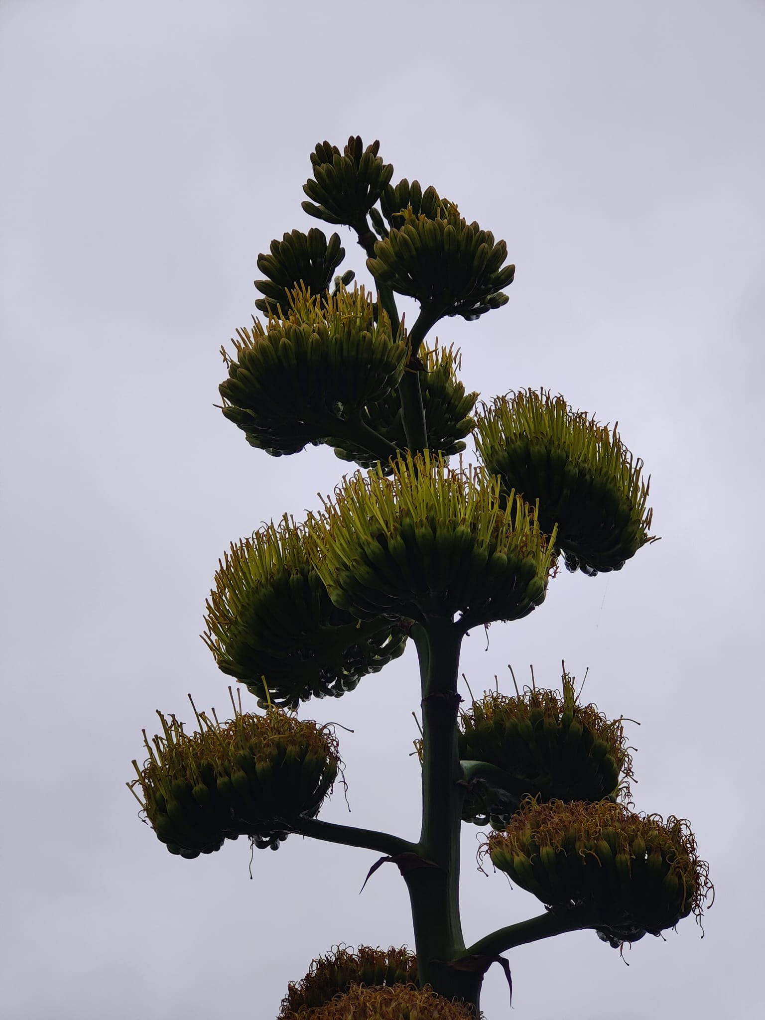 Ik heb hier een Agave isthmensis in bloei, of bijna, die hetzelfde vertoont.