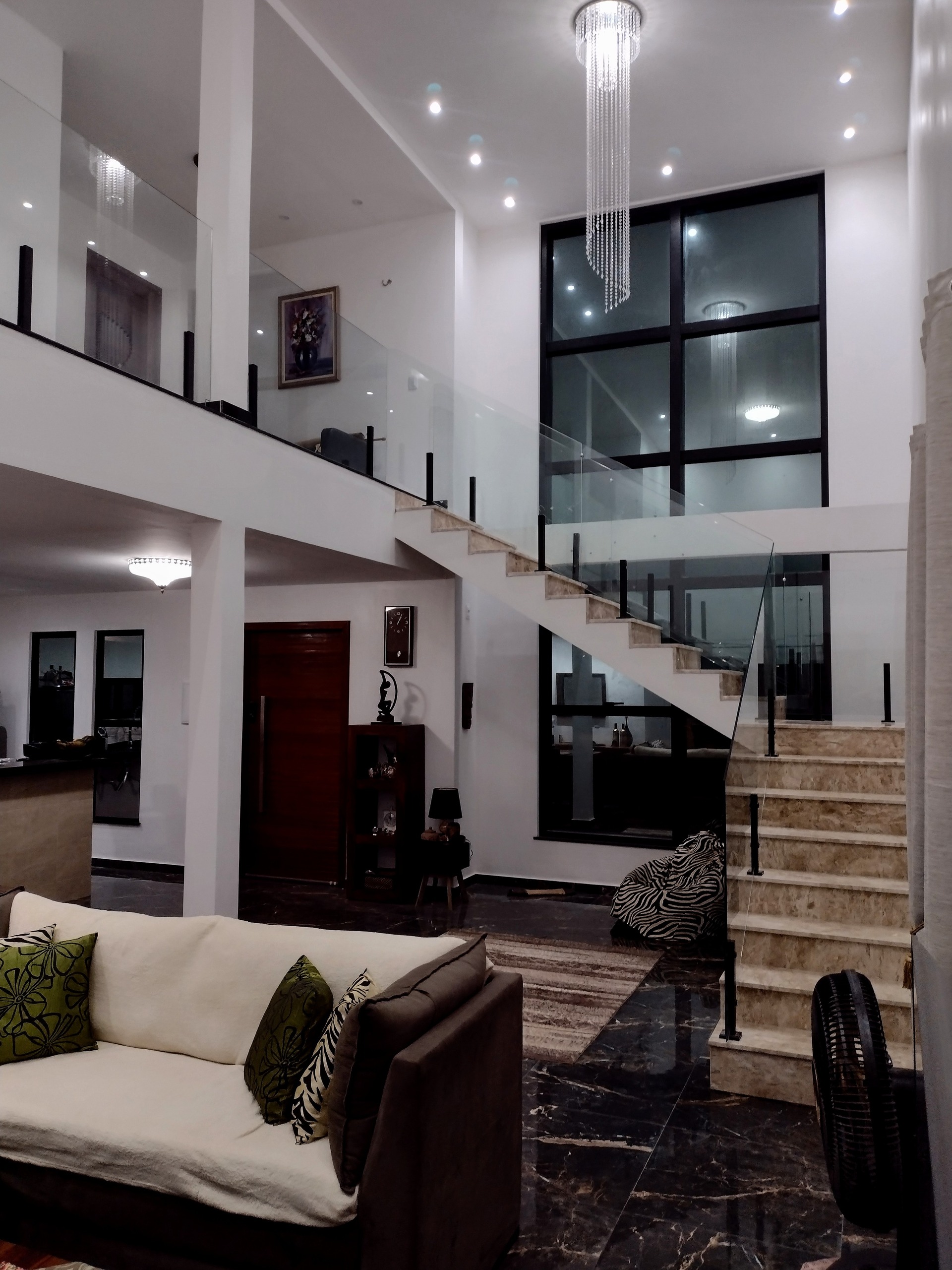 De transparantie is erg mooi maar niet ongevaarlijk! je moet niet vallen tegen die grote glasplaten of het nu gehard of gelaagd glas is maakt niet uit, het gaat stuk als iemand hier frontaal tegenaan gaat :fluiten: Ik heb het ook wel eens in een ontwerp voorgesteld maar dat werd door veiligheids overwegingen afgewezen.....Dat werd opgelost met een stale stangrial wat de spanning weg nam maar hier is dat voorschrift ;)