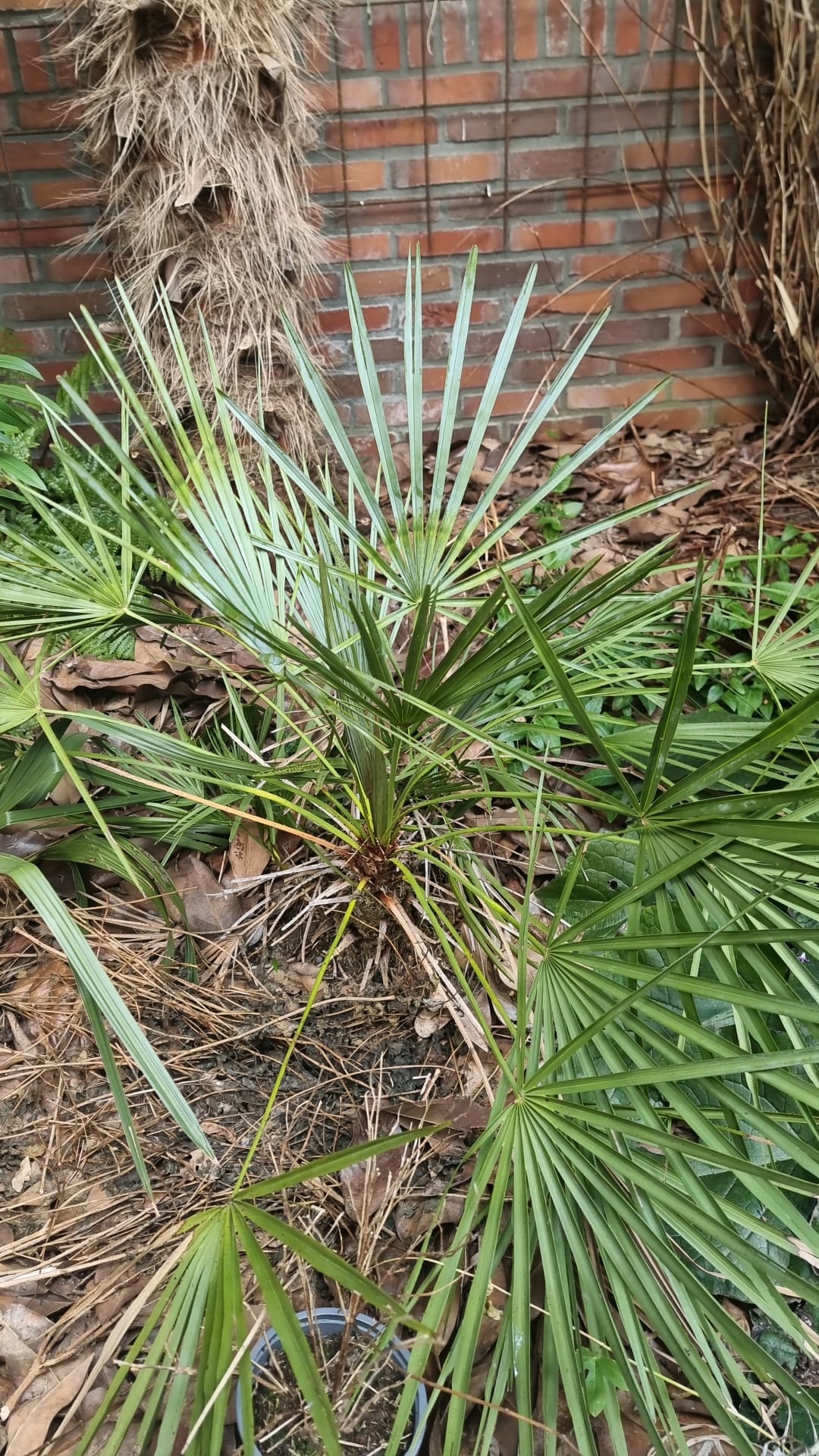 Chamaerops humilis var. humilis (met mogelijk invloed van een cerifera), standplaats ZW aan de voet van een Metasequoia op een verhoogde doorlatende grond (zand/klei -zavel)