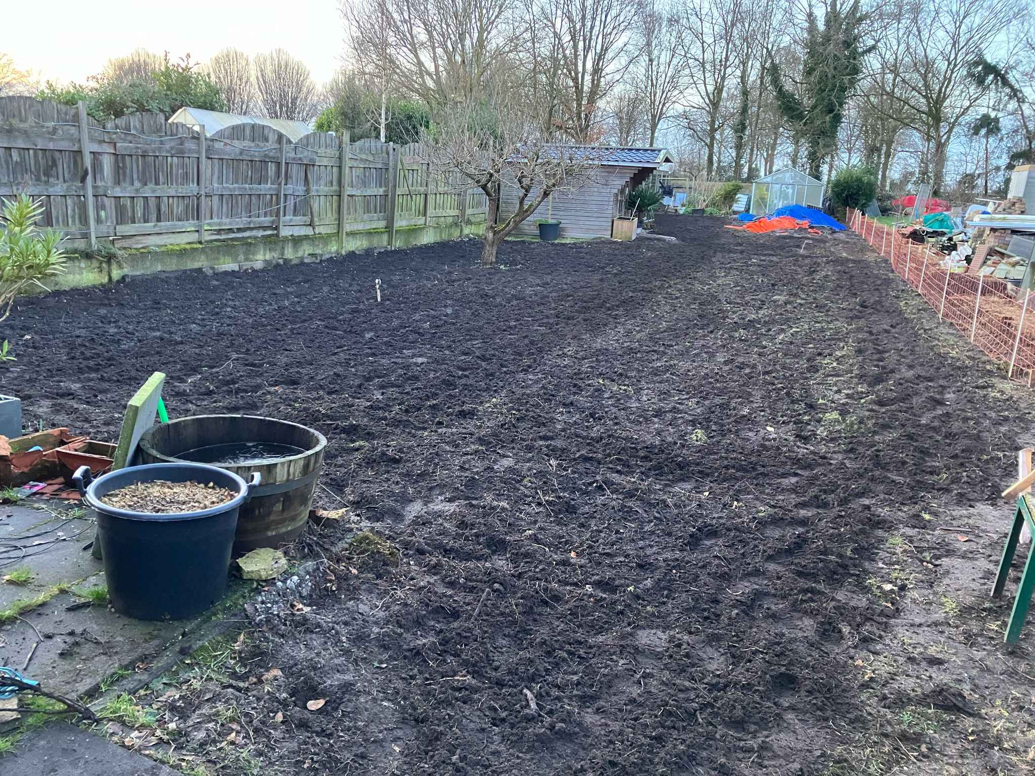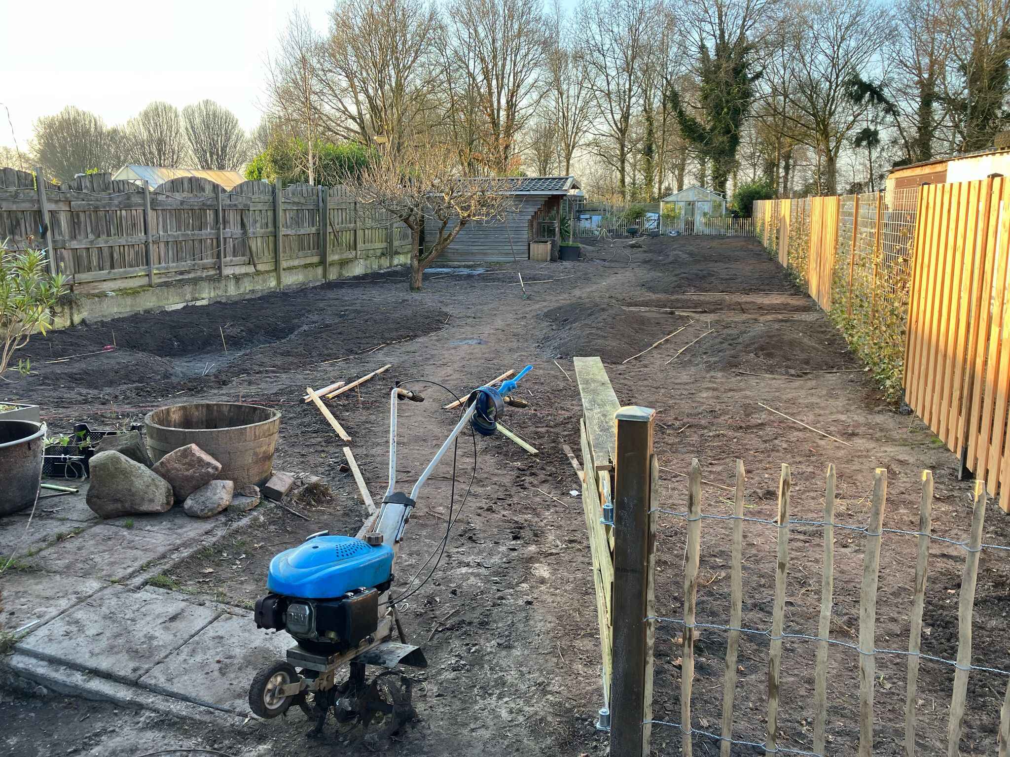 Heel kritisch is de tuin hier net wat te smal voor, een paar meter extra was met het oog op paden en zitplekken iets ruimer.