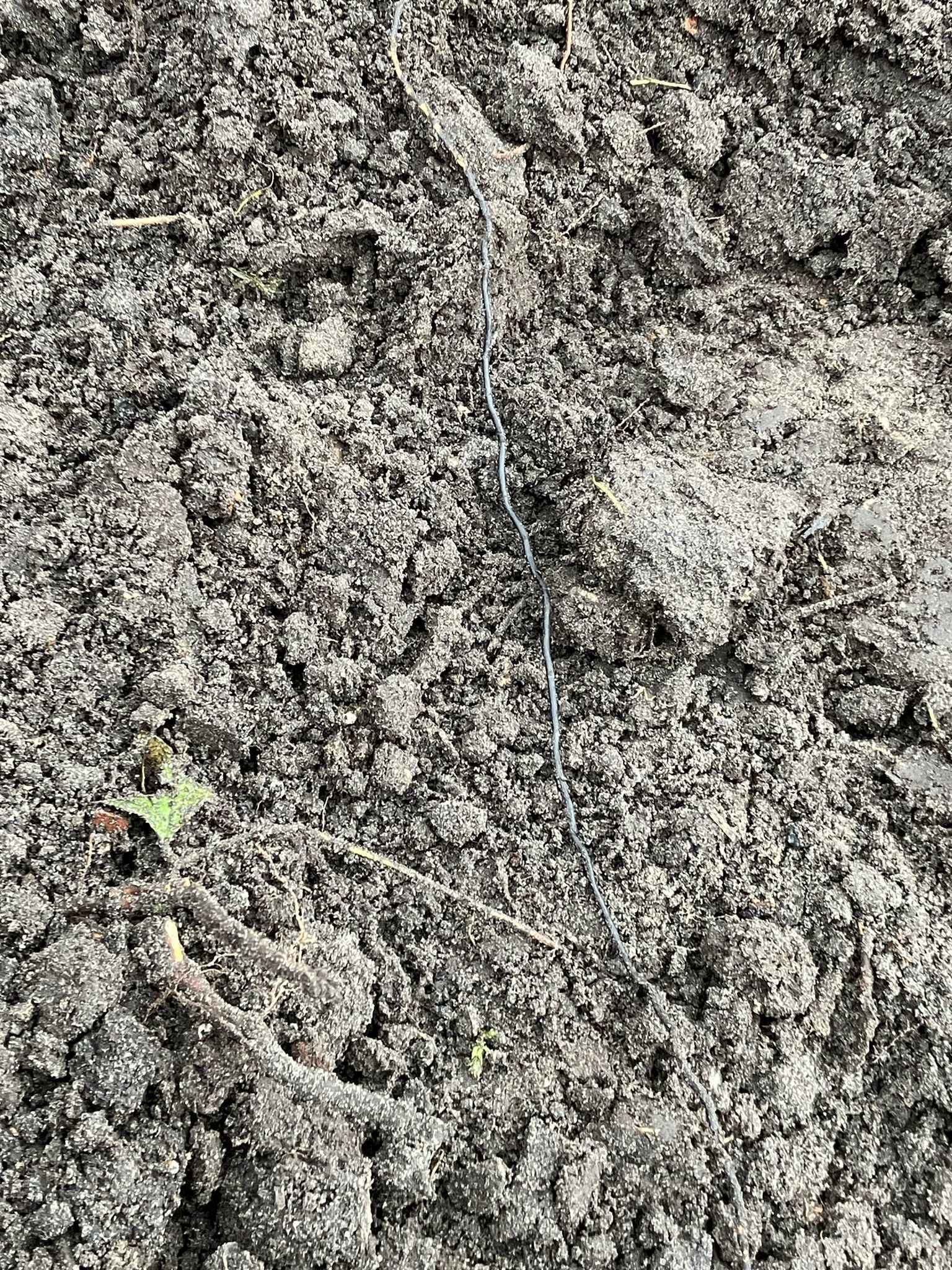 Hierin heeft de honingzwam goed huisgehouden en vanaf deze plek schieten erg veel dikke zwarte schoenveters door de grond.