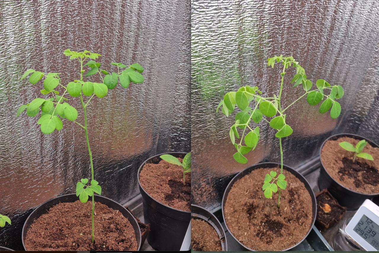 Ik merk ook dat de Moringablaadjes heel gevoelig zijn, sommigen zijn gelig/wit geworden, gelukkig beperkt. Teveel water is een veel voorkomend probleem had ik gelezen, voorlopig laat ik de grond opdrogen.