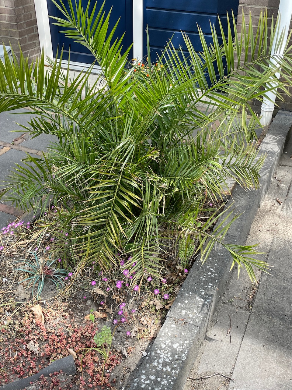 Na de winter maar eens kijken, maar enthousiast ben ik in elk geval over de kruising van reclinata met canariensis. Al was het alleen maar omdat die nauwelijks stekels heeft