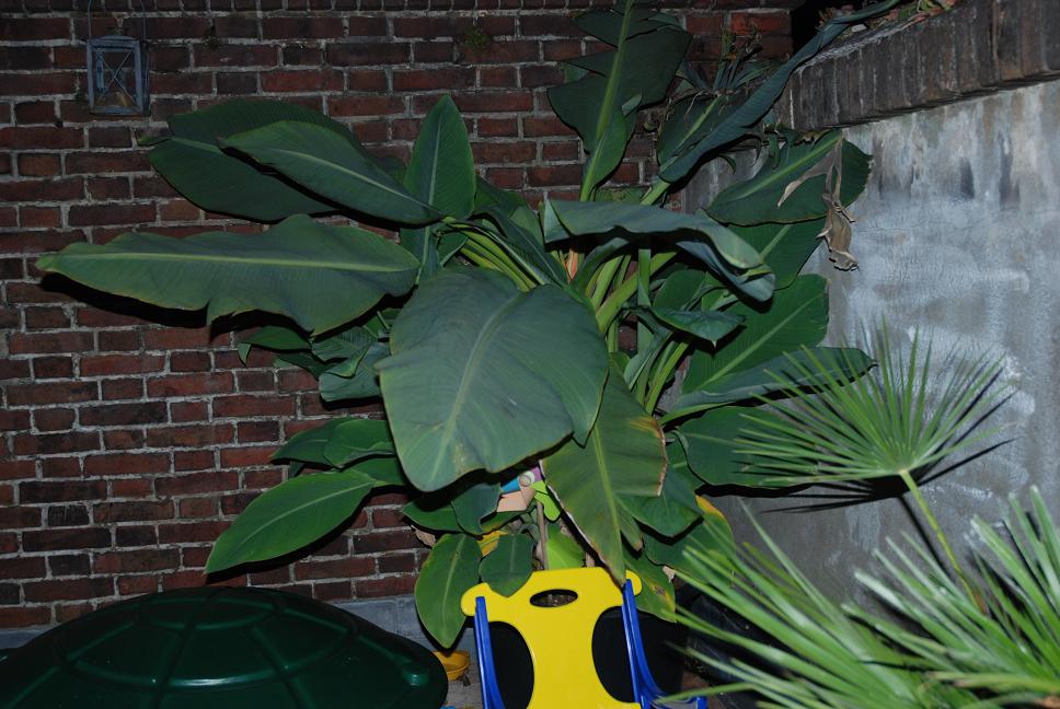 Mijn Musa Basjoo stond vorig jaar ook in de hoek tegenover deze lasiocarpa. Deze stierf af tot aan de grond, en kwam nooit meer iets boven de grond. Ja.. onkruid ;-)