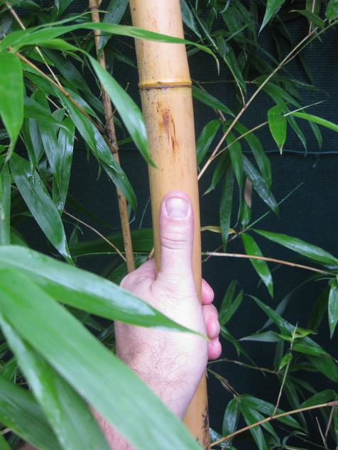 Zwarte bamboe en gele met een groen streepje , bij de persoon waar ik deze gaan halen ben had de gele halmen van zo'n 5 cm diameter .