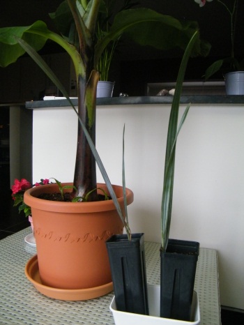 Ik heb 2 weken geleden 2 bismarckia zaailingen gekocht. Deze stonden in trays en zijn bij de verkoper verpot in potjes van 7x7x18.
