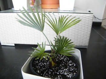 Vandaag naar de einde seizoensverkoop geweest bij Palmeria en nu de trotse eigenaar van een Trachycarpus Princeps.
