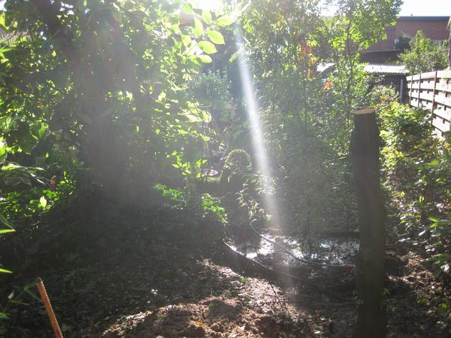 vandaag een beetje gespit en transportband ingegraven om zwarte bamboe aan te planten .