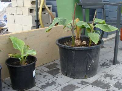 Hier enkele foto's van mijn planten, de kleine Fortunei had speerrot en behandelt met bordeause pap en helemaal hersteld, jammer de enige die zich hersteld heeft, de andere kleine met dakje en de grote met dakje is nog niet hersteld en vrees er ook voor dat dit nog ooit komt. Na zo'n lange en strenge winter wil ik niets verliezen en heb al mijn musa's uit de grond gehaald en binnen in pot gezet lekker warm en droog in huis. Verder heb ik nog enkele aanwinsten gedaan. De butia capitata en de fortunei komen van Palmgarden en zie de cactus krijgt ook scheuten die ik in de lente ga ompotten.