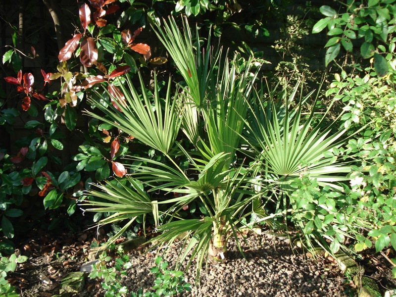 dit kleine plantje zal samen met T. princeps het koningspaar van de tuin worden denk ik. Brahea moorei en groeit verassend snel in mijn klimaat! dit plantje was slechts enkele grasprietjes groot toen ik hem in 2009 uitplante.