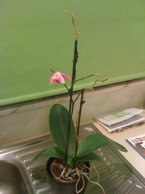 Met het schaamrood op de wangen ( :fluiten: ) geef ik toe dat er één plant is die ik maar niet mooi houdt in huis, jawel... de Phalaenopsis. :oops: