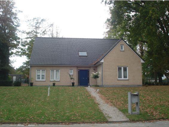 Links voor de twee ramen staan twee kleine Trachy's in de volle grond.