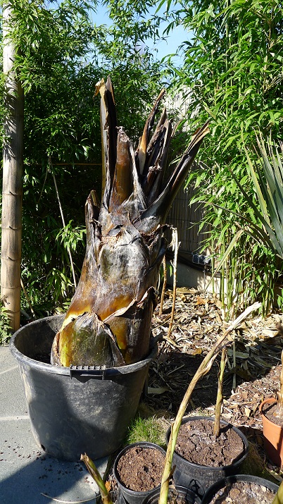 @Djoeke, de Trachycarpus op de foto is tijdens de winter van 2009/2010 geveld door speerrot. In de hoop dat deze nog zou herstellen heb ik voorjaar 2010 de zaag gehanteerd en vervolgens met heel veel moeite het geduld opgebracht met uitgraven tot 2 weken terug. Niks van herstel gedurende deze periode! Staat nu in een kuip, kijk het nog even aan :roll: komt er deze zomer nog niets, gaat ie de kliko in. Inmiddels is het vrijgekomen plekje in de tuin al benut voor het planten van een flink doorwortelde Phoenix Canariensis :thumb_up: