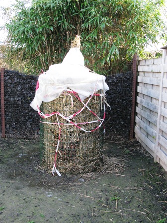 Het stro heb ik weggegooid. Een heel jaar stockage zie ik niet zitten voor die €1,- per baal aanschaf prijs.