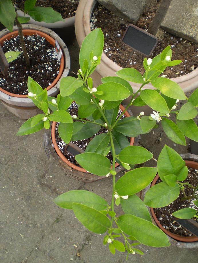 @ Grad : De kleine planten staan in terracotta potten en deze potten staan in houten potten. 2 citrussen staan in stenen potten. De andere grotere citrussen staan in grotere bruinkleurige plastieke potten maar ik moet er nog een 10-tal verpotten naar een grotere pot.