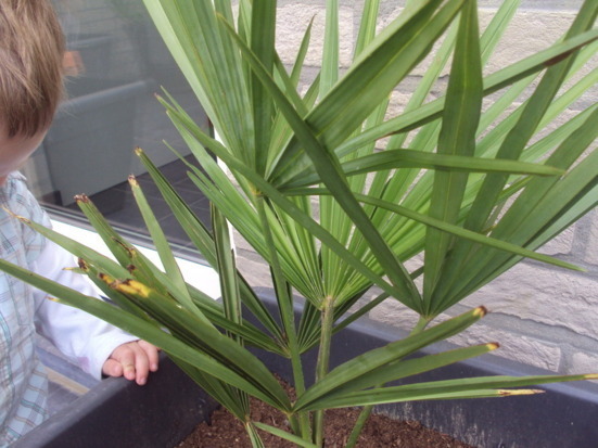 Van deze palm zijn voelen de bladeren heeel erg droog aan, precies karton... en er zijn reeds wat bruine plekken te zien... is dit normaal?