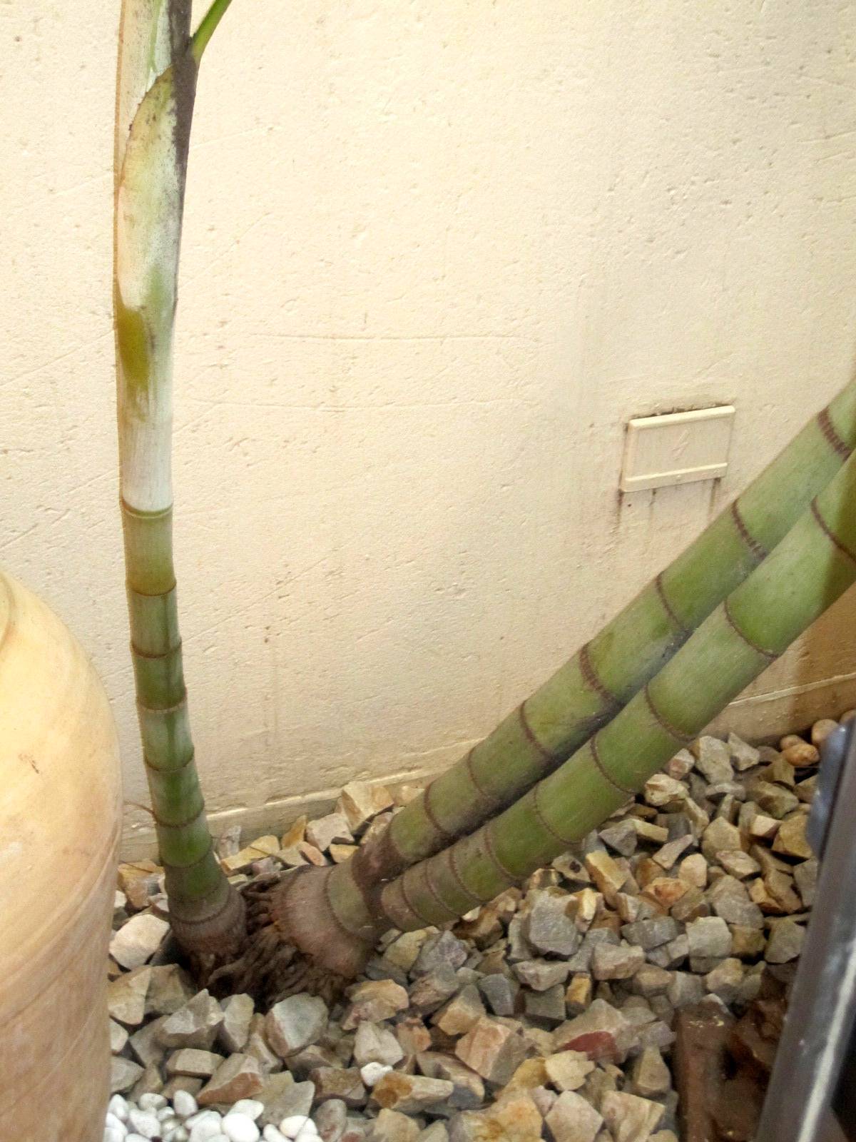 Ik denk dat het uiterlijk van de plant een beetje afwijkt doordat hij op een schaduwrijke plaats staat. In de volle zon zou deze palm gele bladstelen hebben en daardoor een "weggevertje" voor identificatie.