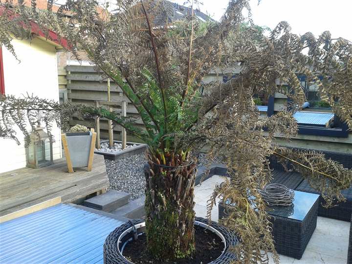 Staat je dicksonia nou gewoon in de volle zon??????? :cry: Zonde want zijn blad wordt bruin zie ik. Maar je hebt een prachtige tuin zeg, love it!!!