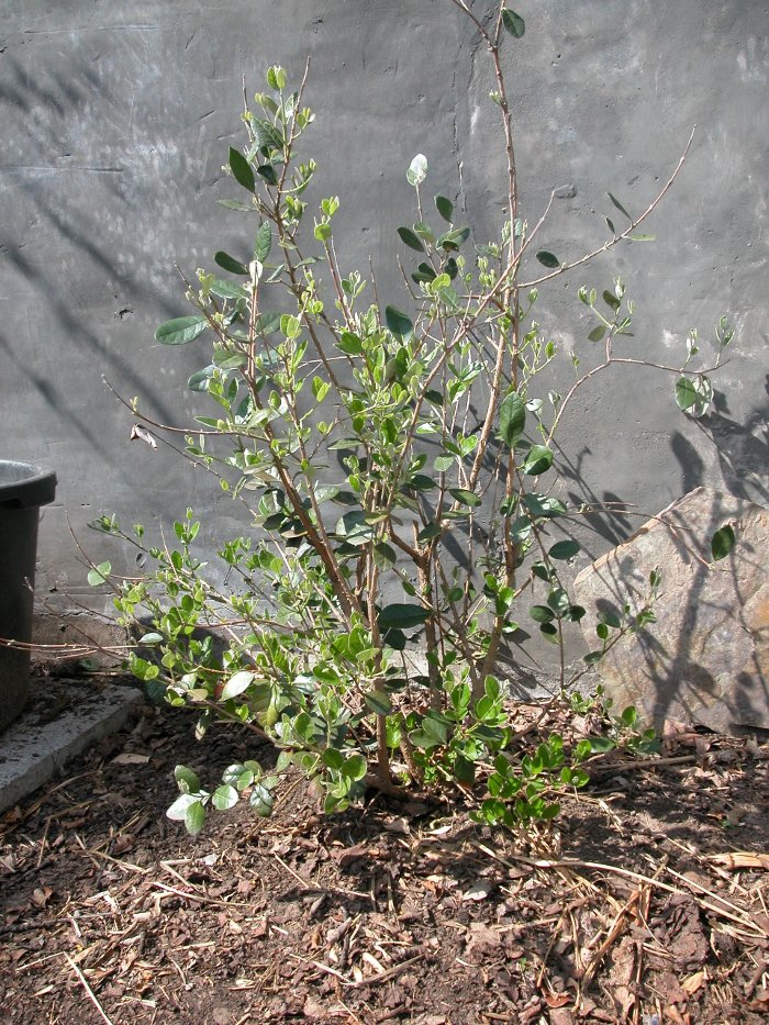 Tegen late winter veel blaren verloren, loopt nu weer uit. Ook nieuwe scheuten onderaan de stam.