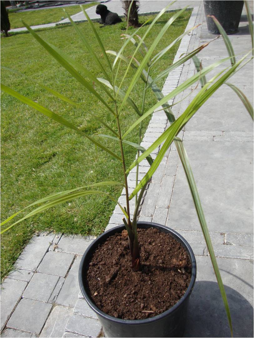 je weet inmiddels hoe ik denk over het buiten plaatsen van tropische palmen,maar als je het toch wilt doen moet je de plant de eerste tijd wel beschermen tegen "sun shock".