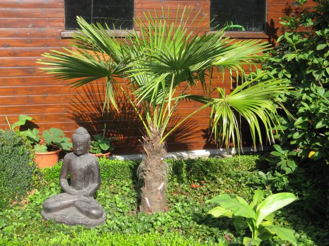 Het boeddhabeeld vind ik zoals videomaster ook erg mooi. Past wel bij de tropische planten hé. De Trachycarpus fortunei komt immers van het oosten, misschien dat het daarom zo mooi past! De planten zijn verder mooi geïntegreerd met de rest van de tuin ;) Blijft het hierbij of ben je van plan om je exotische collectie nog wat uit te breiden?