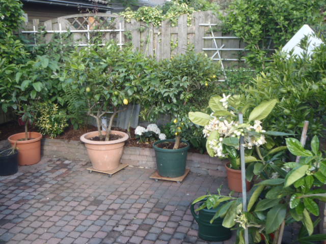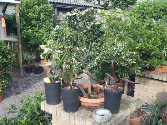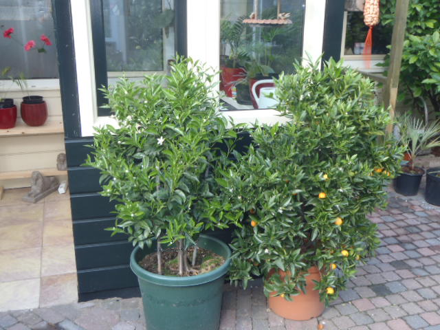 achter het huis staan de meeste in kuipen