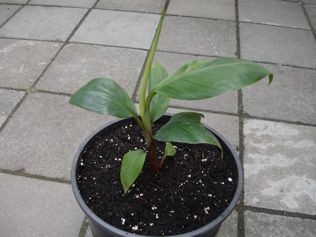 de canna indica die hier vorig jaar in stond is volledig weggerot,ik had nochtans de plant voorzien van een dik deken van schors maar het mocht niet baten dus heb ik er deze keer een musa sikkimensis in geplaatst en aangezien dit een ingesloten gedeelte van de tuin is waar het in de zomer gemakkelijk 45 graden bij zonneschijn kan worden denk ik dat de banaan het wel eens goed zou kunnen doen,moet er wel bij zeggen dat hij maar gedeeltelijk in de zon staat