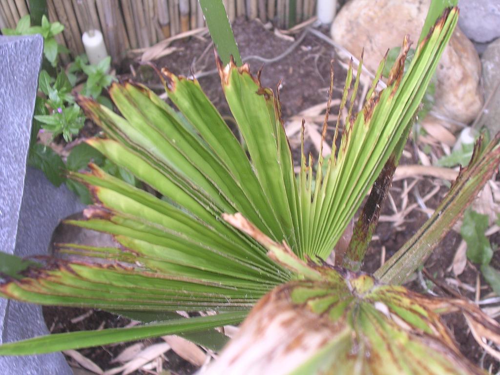 Ik heb al een jaar of 6 een palm in de tuin staan. Hij staat in de volle grond en groeit ieder jaar goed. Ieder nieuw blad die de palm nu krijgt lijkt wel door iets te zijn aangevreten. Weet iemand wat dit is en wat ik eraan kan doen.