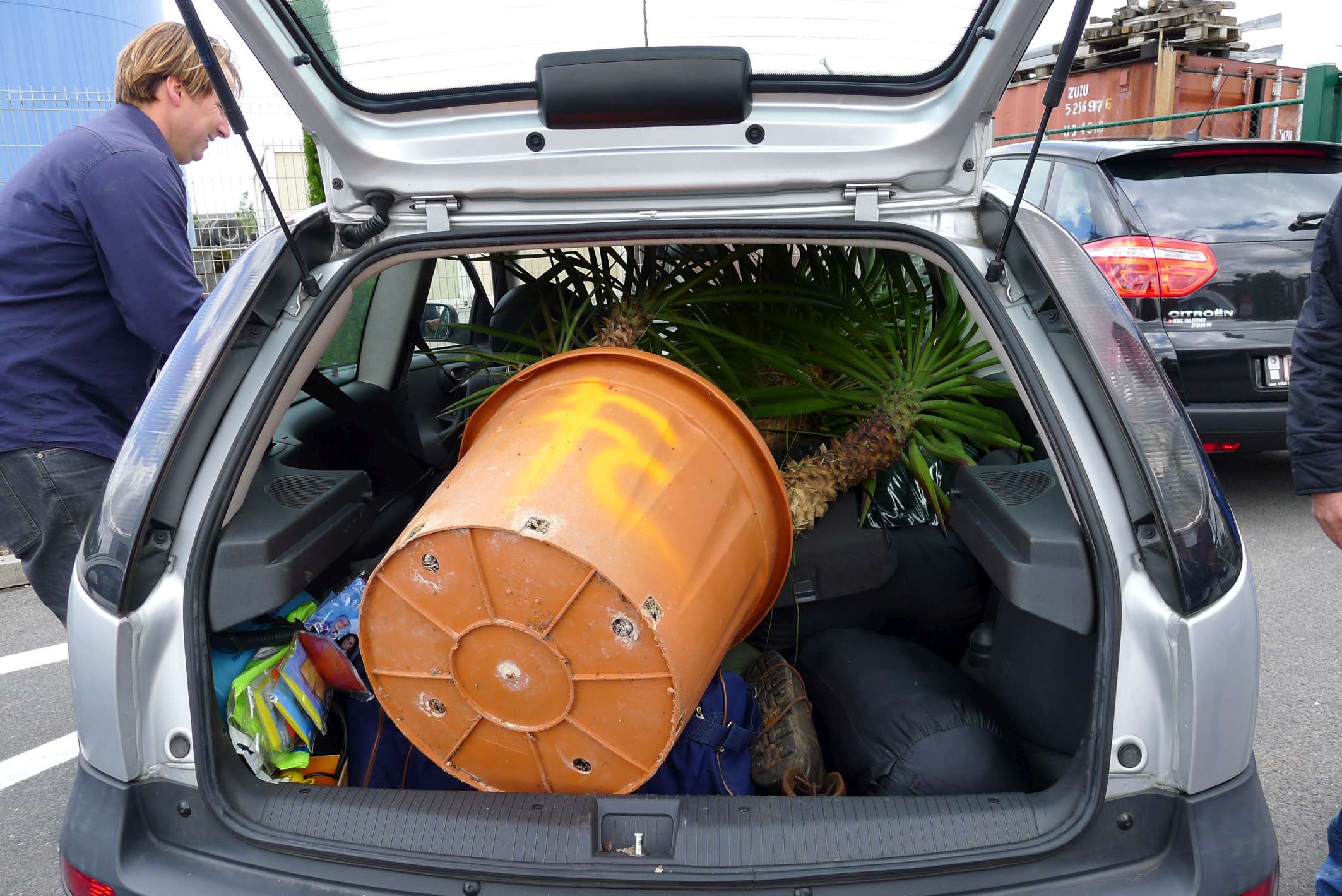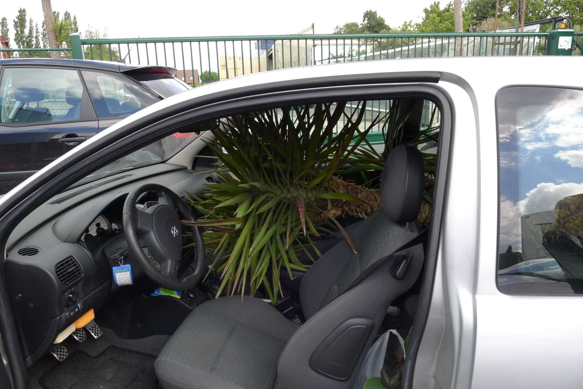 Ze heeft er naast gelegen op de afgeklapte achterbank als een slangenmens Ik had de slaapzak (want de kampeerspullen van bij Djoeke zaten ook al in de auto) om de kroon gedraaid ivm de stekende bladeren. Gelukkig was het maar 254 km