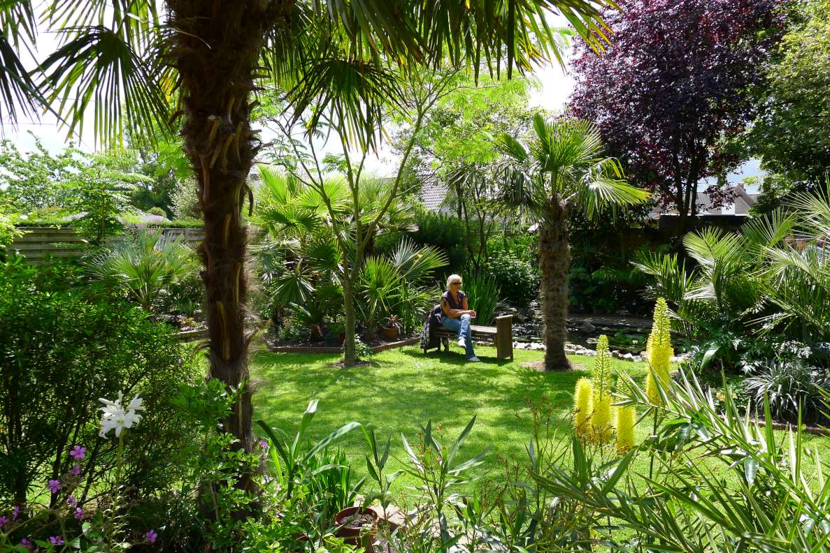 Na uurtjes plezier op FC-plants naar Erna & Rudi gereden met een enorme nieuwsgierigheid naar hun tuin. Nog voor het binnen komen in de tuin viel men mond al open van een prachtige grote Phoenix canariënsis in de voortuin ! :o